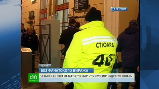 Совсем немного времени остается до старта матча 1/8 финала Лиги чемпионов «Зенит» — «Боруссия». На стадионе «Петровский» ожидается 15 тысяч болельщиков. Четыре сектора стадиона на этот раз будут пустовать. Речь идет о фанатском вираже, который был дисквалифицирован по решению УЕФА. Это связано с противоправными действиями зенитовских фанатов на игре групповой стадии турнира.