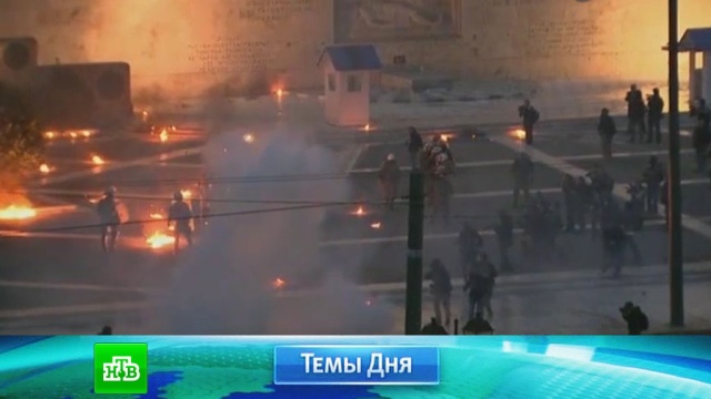 Греческий огонь: в Афинах манифестанты забросали полицейских коктейлями Молотова.