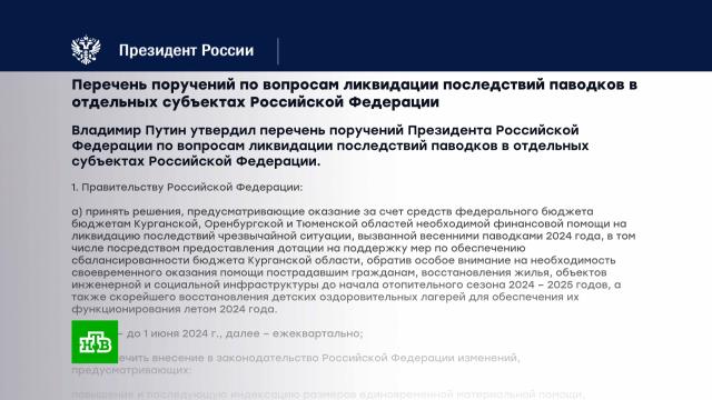 Компенсации пострадавшим от паводка должны выдаваться за любое утраченное имущество, а сами выплаты пора проиндексировать. Об этом заявил Владимир Путин на совещании по паводкам. Президент провел его видеосвязи. О ситуации докладывали главы профильных министерств, губернаторы Оренбургской, Курганской и Тюменской областей, мэры подтопленных городов. Путин подчеркнул, что к оказанию помощи людям нужно подходить неформально. По словам президента, пострадавшим не важно, какой уровень власти за что отвечает. Важно, чтобы проблемы решались.