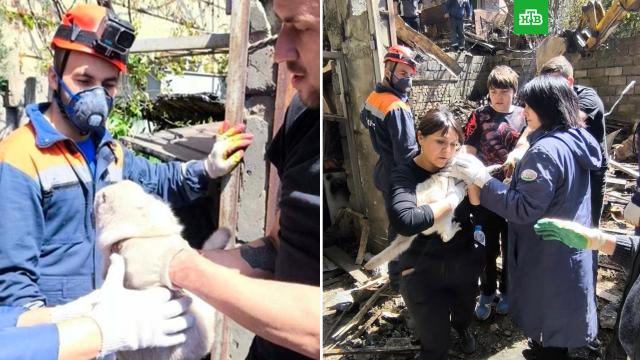 В Туапсе при разборе завалов на месте разрушенного дроном дома нашли живую кошку