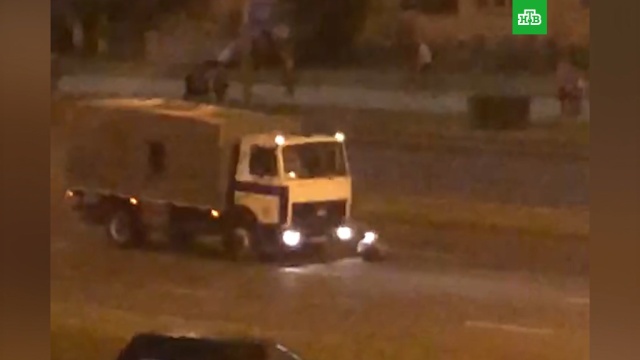 Автозак сбил протестующего в Минске: видео