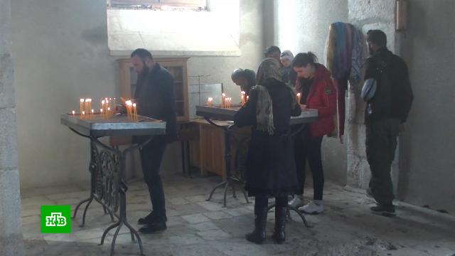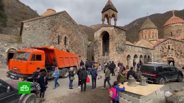 Паломники-армяне в сопровождении российских миротворцев сходили на службу в монастырь Амарас 18+