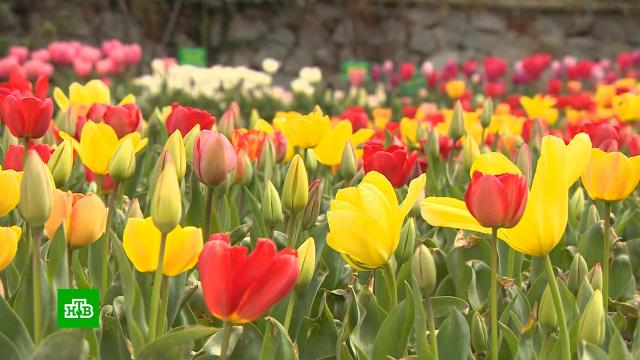 В Крыму уже сейчас можно получить первые летние впечатления. Там начался парад тюльпанов. Это традиционная выставка цветов в Никитском ботаническом саду под Ялтой. Тюльпаны там зацветают первыми, потом распустится сирень, потом ирисы, затем розы, которые будут цвести вместе с хризантемами до Нового года.