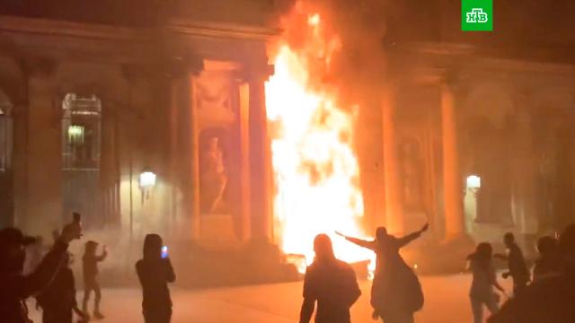 Кадры столкновений протестующих с полицией во Франции
