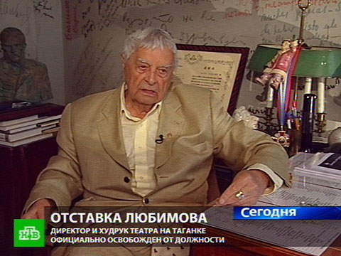 Юрий Любимов по собственному желанию освобожден от должности художественного руководителя Театра на Таганке. Его заявление подписали в департаменте культуры Москвы.