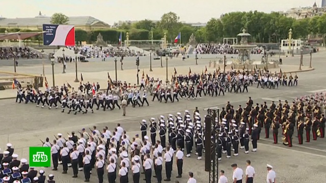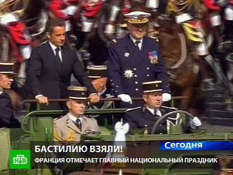 Сегодня по Елисейским полям в Париже стройными колоннами прошли танки, бронетранспортеры и самоходные зенитные установки. А вслед за ними в небе появилась боевая авиация. И все это под торжественную музыку с обязательным исполнением Марсельезы. Франция отмечает главный национальный праздник день взятия Бастилии. В целях экономии второй год подряд отменяется торжественный прием, который прежде в честь праздничной даты устраивал глава государства. Вместо этого состоялся званый обед, где Николя Саркози появился без супруги. Карла Бруни сейчас на 6 месяце беременности и отдыхает на президентской вилле на Лазурном берегу.