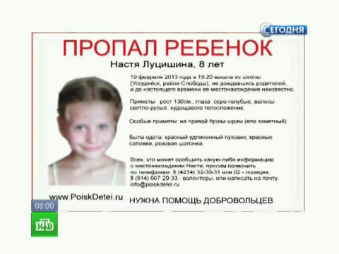 Полиция Уссурийска: Настю Луцишину изнасиловали перед смертью 18+